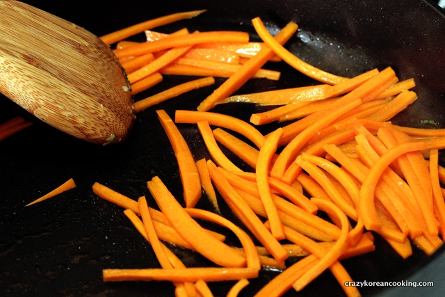 15. Sauté carrotsSauté carrots with 1 teaspoon of sesame oil, ¼ teaspoon of salt and a pinch of black pepper on medium heat for 5 min or until cooked. |