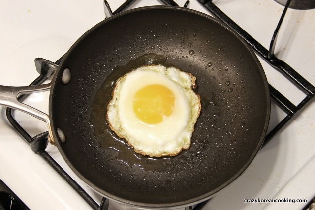 23. Fry eggs (optional)Fry 4 eggs with salt and pepper and place it on top of the dish (one for each stone bowl). Eggs are optional. |