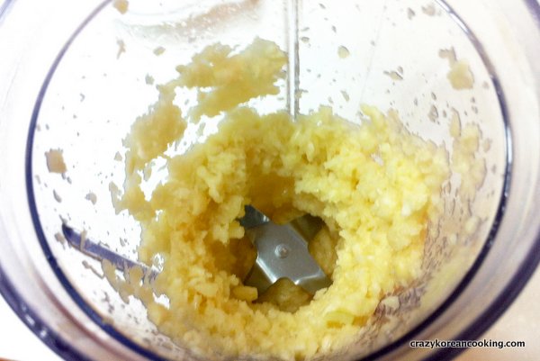 Mince garlic with a knife, a garlic press or an electronic blender.