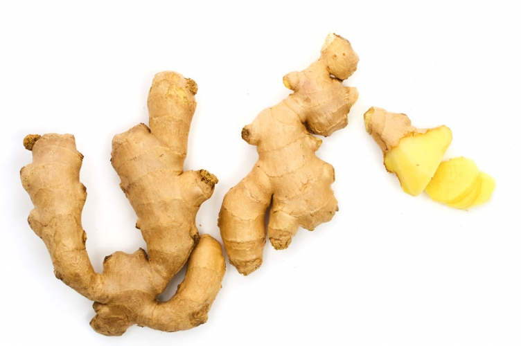 Use the back of a spoon to gently peel ginger, then shred, mince, slice or grate as needed. Slice ginger perpendicular to the direction of the fibers to eliminate any stringiness.