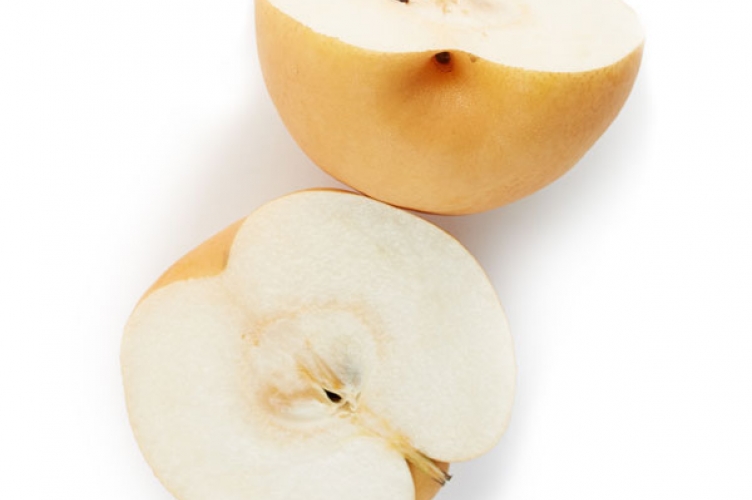 Korean Pear (Bae) (배) is a large and fragrant fruit native to China, Korea, and Japan. The pears are much larger and rounder than other varieties — closer in shape to an apple — and have a brown exterior. The sweet, translucent flesh is very juicy due to a high water content. Korean pears are much crispier and juicier than Western pears, which tend to have a buttery texture.