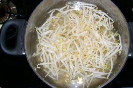 Put washed bean sprouts in the boiling water and wait for 2-3 min until they become soft. |