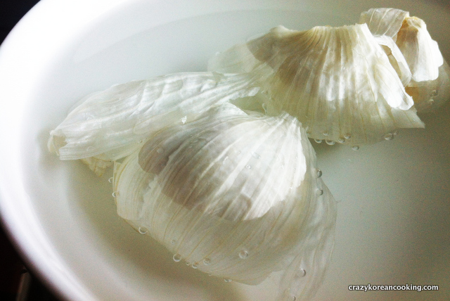 Soak garlic bulbs in water for 10-15 minutes. |