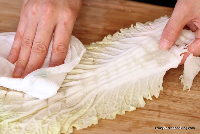 10. Rinse & dry napa cabbageRinse the napa cabbage leaves and pat-dry with paper towel or clean kitchen towel. |