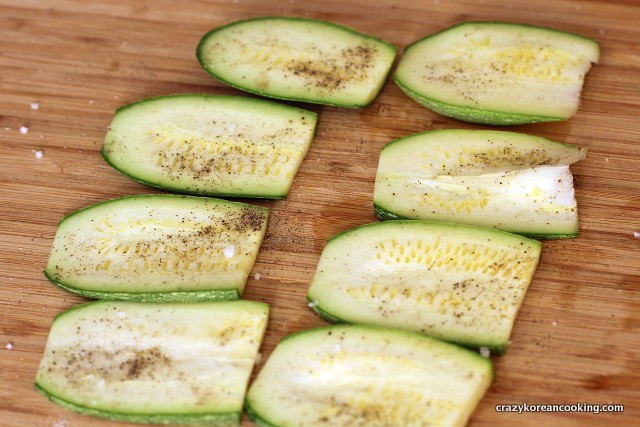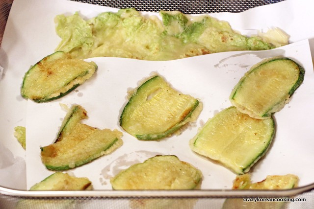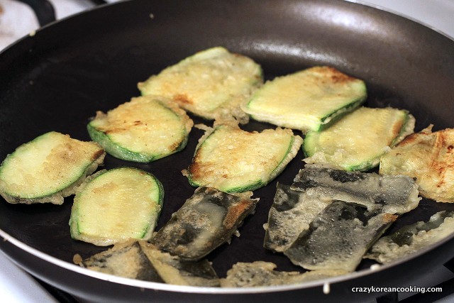 17. Make kelp & zucchini jeonAdd more oil to the pan. Coat kelp and zucchini with the batter and cook both sides until golden. |