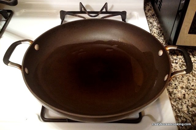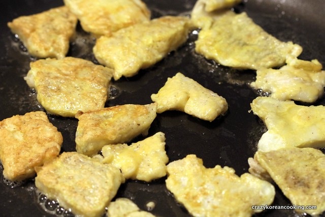 If you like crispy texture, you want to add more oil and pre-heat and cook on high heat. Be extra careful when you add vegetables to a pre-heated pan. Hot oil can splash everywhere (especially if your hands were wet and dripping water). Have a splash guard or a lid ready in case. If you like jeon softer, use less oil and cook on low heat.