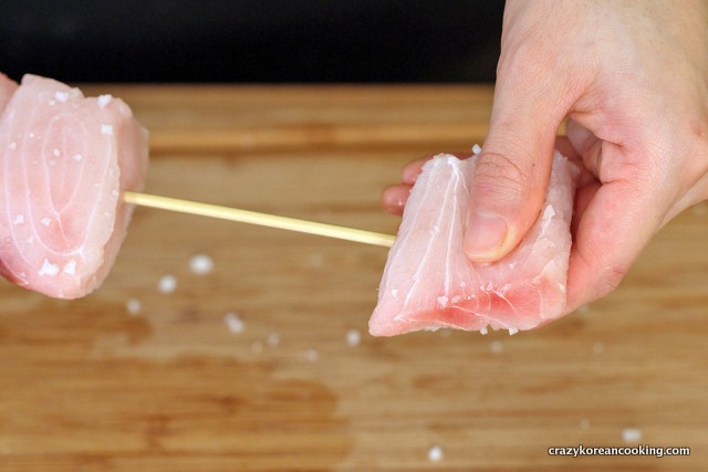 24. Skewer mackerelThread a whole mackerel onto a skewer (optional). |