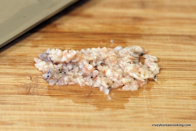 12. Mince shrimp fish sauceUnless you are using liquid fish sauce, mince 1 tablespoon of shrimp bits in the shrimp fish sauce. |