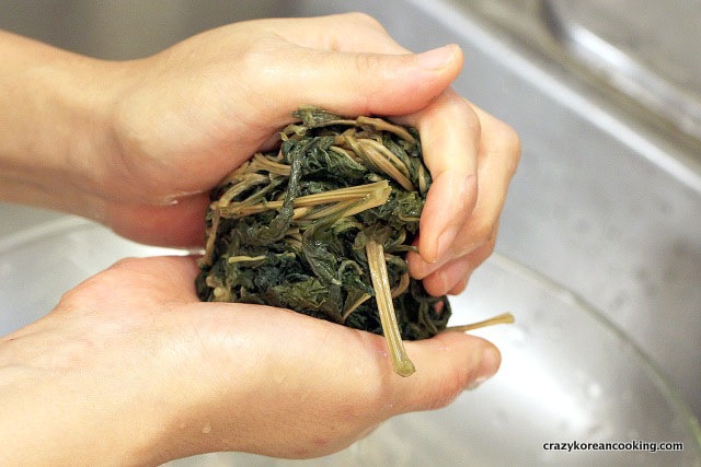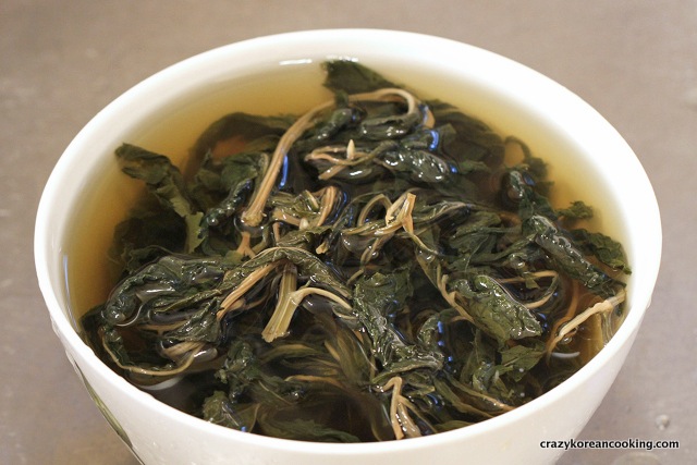 1. Soak and washSoak dried chwinamul in water for at least 6 hours. It’s ideal to soak overnight. Rinse throughly with cold water. *If you have fresh chwinamul, skip soaking. |