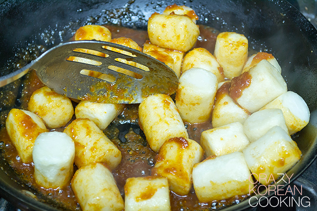 Potato starch: Potato starch on the rice cake gives crispier texture and helps the sauce stick to the rice cake better. You can use regular flour instead or omit if you don’t have potato starch.