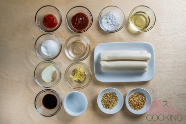 3. Make the sauceIn a food processor, blend together: ⅛ onion, 3 tablespoons of hot pepper paste, 1 teaspoon of soy sauce, 1½ tablespoon of sugar, 3 tablespoons of ketchup, 2 tablespoons of mulyeot (malt syrup), 2 teaspoon of minced garlic and 5 tablespoons of water. Set it aside. |