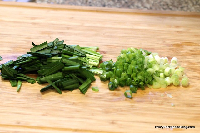 Wash and cut about 60g of buchu (garlic chives) into 1” (or 2 cm) long pieces.