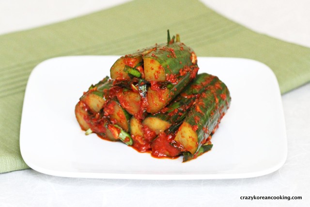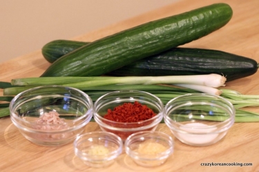 There are two ways of brining cucumbers: dry and wet methods. The wet method is better for the even distribution of saltiness and results in softer texture. The dry method is preferred if you want to enjoy the raw crunchy texture of cucumber. When selecting cucumbers, try to find cucumbers with less seeds. You can use Korean cucumber, kirby cucumber, english cucumber or any other pickling cucumbers for this recipe. You can modify the spicy level by adding more or less gochugaru (red chili flakes).