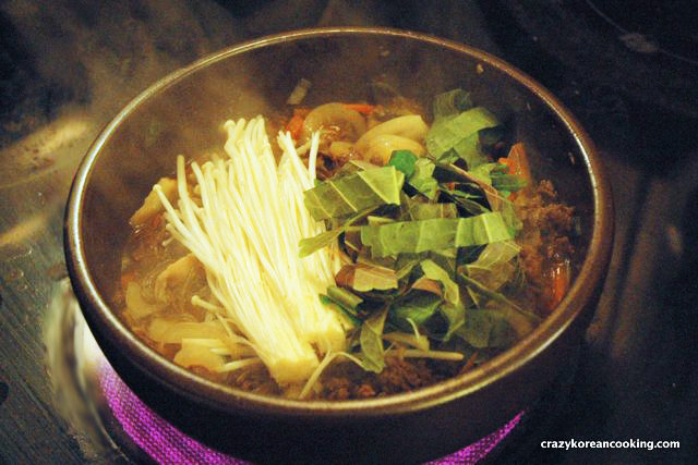 Ddukbaegi bulgogi, Korean marinated beef in hot pot
