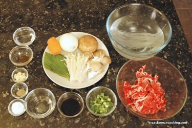 1. Prepare glass noodleSoak 50 g of glass noodle in room temperature water for at least 30 min, rinse and drain. |