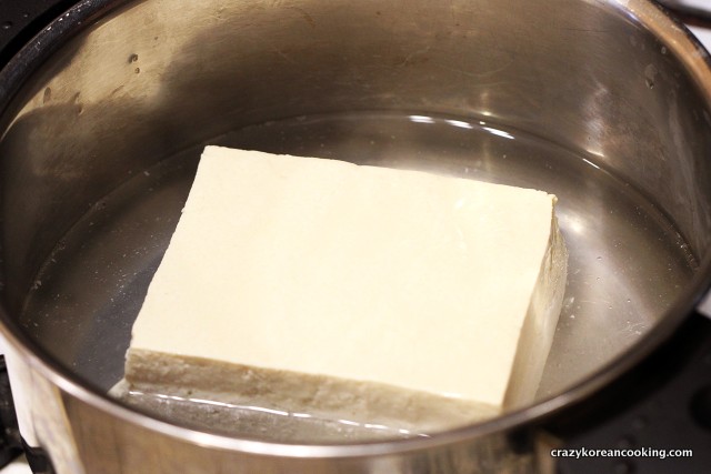 Blanching tofu Instead of blanching tofu, you can slice tofu and microwave it for 2-3 minutes.