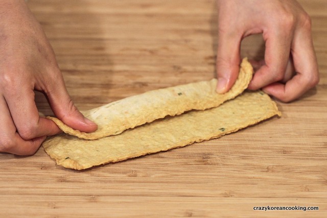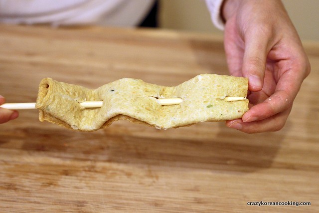 9. Thread fishcake IIFinish threading to the end. If you are not using skewers, you can cut up the fishcake into bite sized rectangles or triangles. |