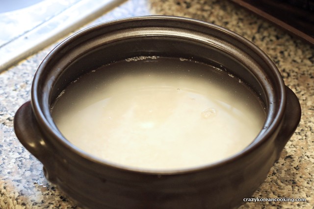 1. Wash riceWash 1 cup of rice in cold water. Do not rub it too hard or too long as it will lose nutrients. Wash twice in total. Second time, drain the water as much as possible without losing the rice grains. |