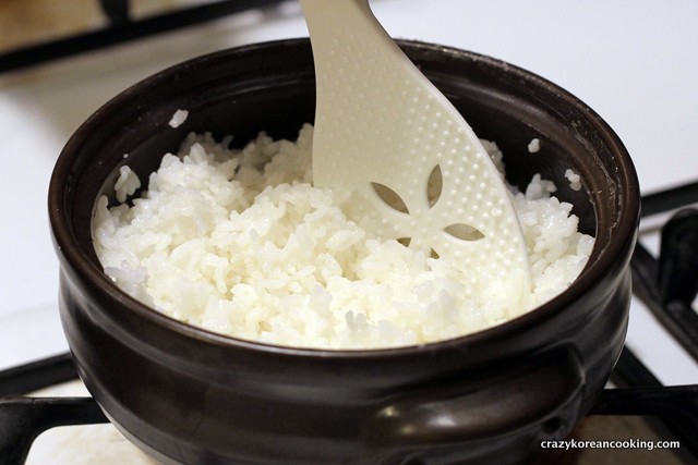 4. SimmerAs soon as it comes to boil, turn the heat down to LOW and leave it for 15 minutes. If it starts to spill over as it hits the boiling point, quickly open the lid and close it back after lowering the heat. Then, you want to keep the lid closed until the end if possible. If you are cooking a larger amount, leave it for longer. If you are not sure, you can leave it on LOW heat for as long 30-40 min and it would be fine other than forming a crispy crust at the bottom. |