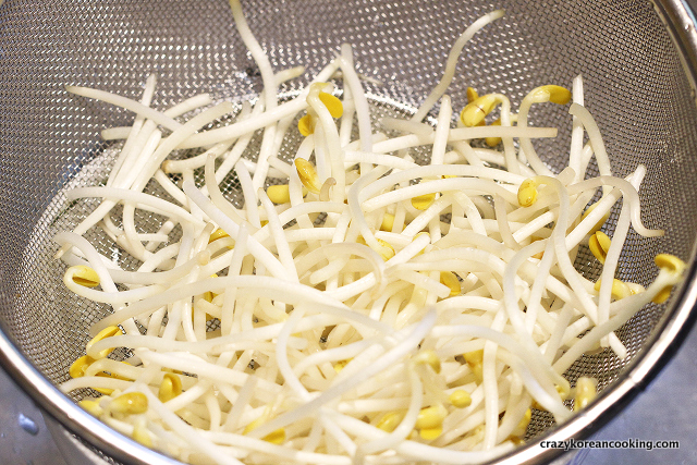 1. WashWash 200g of soy bean sprouts thoroughly in cold water two or three times. Remove any bad beans or spoiled (brown colored) roots if any. Some people remove all roots but it’s not necessary. |