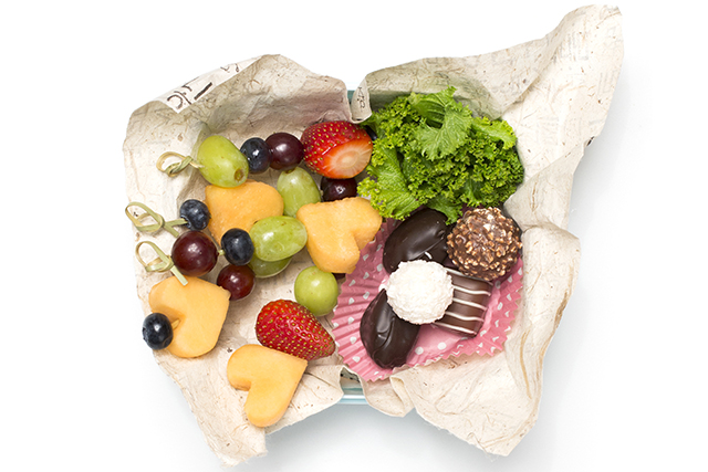 11. Make lunch box IIPlace fruit skewers and chocolates into a second lunch box. You can use cupcake liners to divide up the box. |