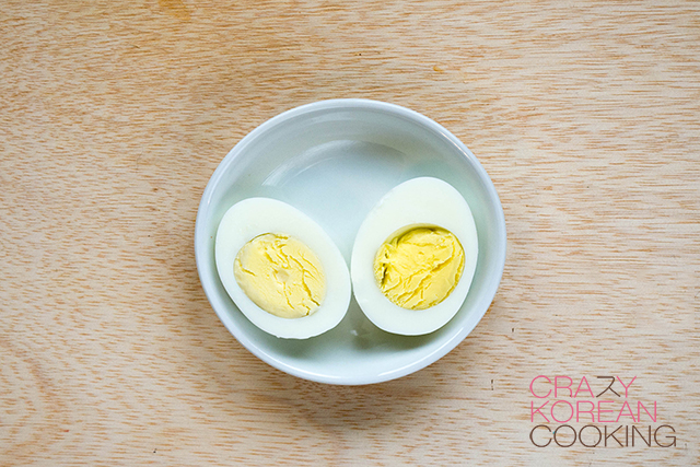 4. Hard boil eggOPTIONAL: Place 1 egg (or more as you desire) in a pot of water so that they are at least half immersed in the water. Add a pinch of salt and boil for 15 minutes. Immediately cool them in cold water and peel off the shells. Cut them in halves. |