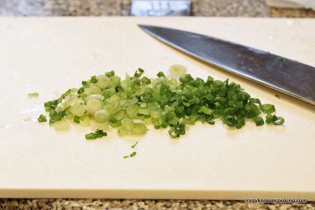 Mince 1 clove of garlic and finely chop 1 green onion to be used in the marinade later.