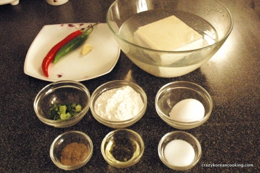 3. Prep 2Wash and thinly slice red and green chili peppers. If the slices are too thick, they won’t stick to the tofu. Wash and pat-dry ssukgot (crown daisy). Chili peppers can be used for decoration and dipping sauce. Ssukgot (crown daisy) is used for decoration only. Decoration is optional. And you can make a simple dipping sauce without chili peppers, although they add a nice kick. |