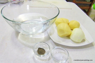 1. Peel & WashPeel 3 small potatoes and ½ onion. Wash them thoroughly. |