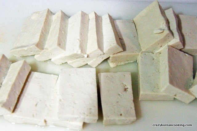 1. Wash & CutGently rinse the tofu under running water. Dry it with kitchen towel. Slice the tofu into rectangles (1¼” X 1½” X ⅜” or 3cm x 4cm x 1cm). You can cut into different sizes as long as the thickness is ⅜” or 1cm. |