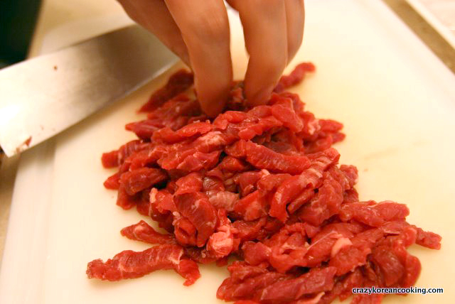 Cut beef intp strips