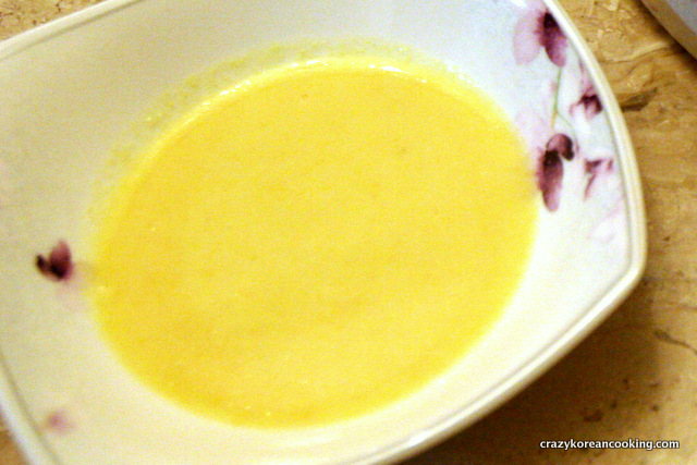 Mix 2 tablespoons of Korean mustard paste, 4 tablespoons of water, 2 teaspoon of sugar, a pinch of salt and 1 teaspoon of milk (optional).