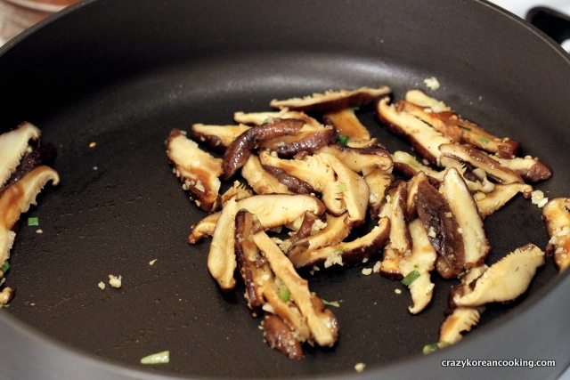 Wash shiitake mushrooms thoroughly and squeeze all the water out by hand.