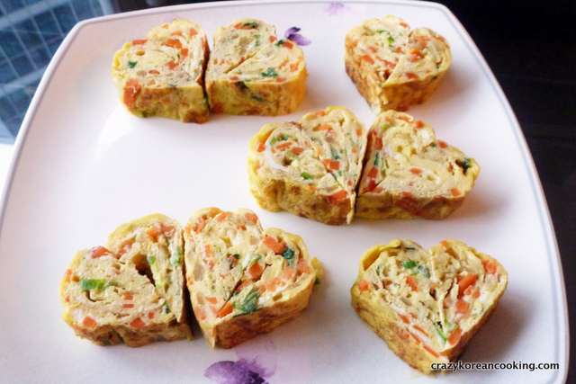 Rolled Egg Side Dish Recipe, HEART SHAPED Gyeranmalyee