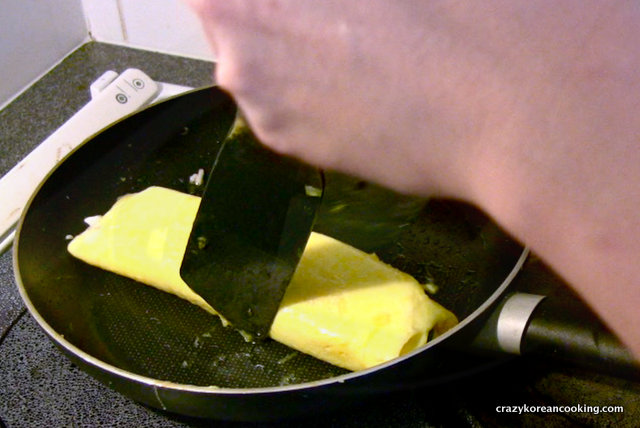 9. Cook remaining eggAdd more egg mixture and roll until the mixture runs out. |