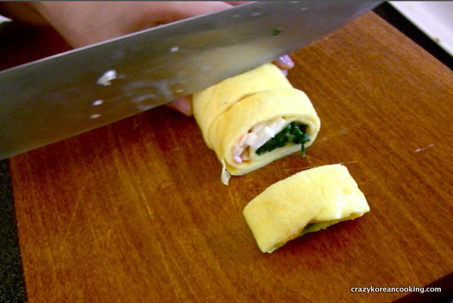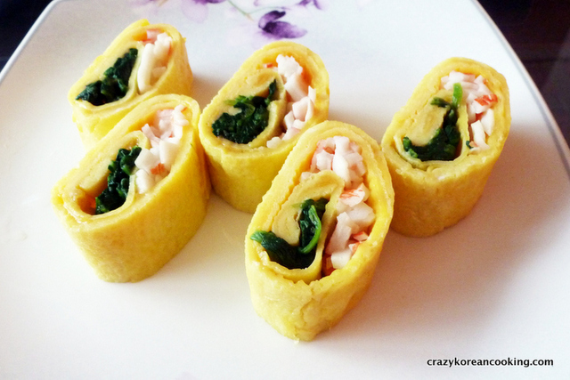 Rolled Egg Side Dish Recipe, Spinach & Crab Meat