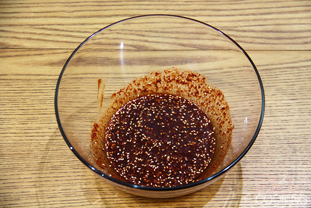 2. Make sauceMix 2 tablespoons of gochujang (hot pepper paste), 3 tablespoon of red chili flakes, 1 tablespoon of soy sauce, 3 tablespoons of sugar, 4½ tablespoons of vinegar, and the garlic water from step 1. Let it mature while preparing other ingredients. If you have time, leave the sauce in the refrigerator overnight. This will make the sauce more flavorful and more vibrant in color. |