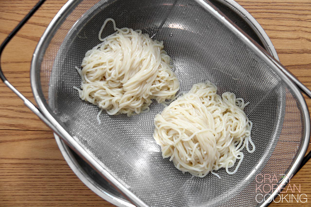7. Wash and drain noodlesImmediately rinse in cold water 3-4 times and drain completely in a strainer. Divide into portions immediately. |