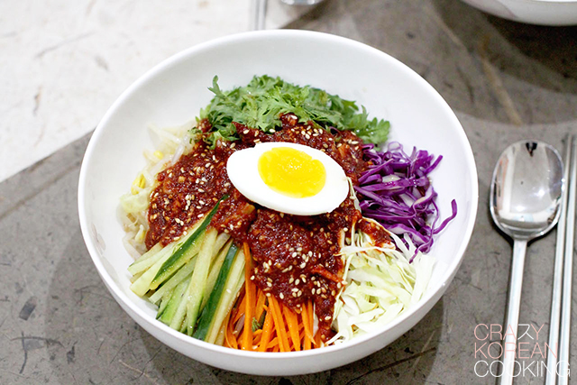 This dish is especially great for hot summer days but certainly can be enjoyed throughout the year. In Korea, jjolymyeon is considered “boon-sik” which is a light meal or a snack.