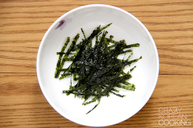 8. Cut seaweedCut a sheet of dried seaweed into thin strips using scissors or you can crumble it in a zipped bag. |
