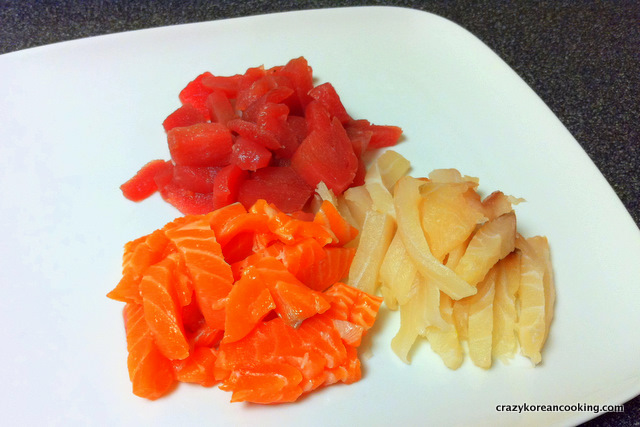 shop these ingredients online »| 2 oz | Tuna (sushi grade) 참치 (or your favorite fish, must be sushi grade) | |