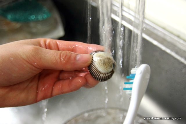 1. Clean CocklesClean 3 cups of fresh cockles with a brush under running water. Soak them in salted water (4 cups of cold water + 1 tablespoon of coarse sea salt) and cover so the inside of the container is dark. Leave it for 2-4 hours to remove sand. Too much salt can kill cockles. Rinse and drain water. Discard the ones that are crushed or broken. |