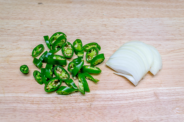 1. Prepare vegetablesWash and slice the onion. Wash and cut chungyang chilli pepper diagonally. |