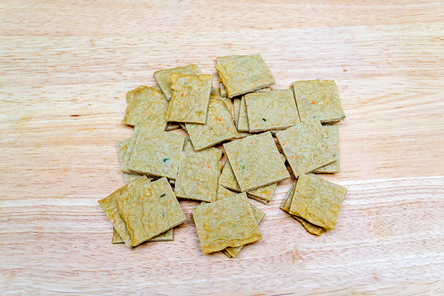 2. Prepare fishcakeCut fishcake into squares (1”X1” or 2.5 cmX2.5cm). |