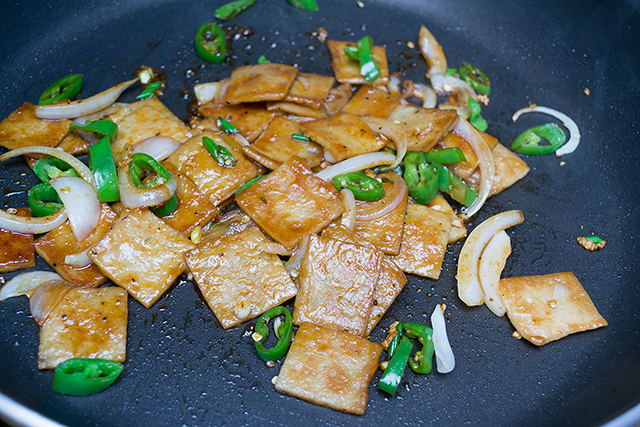 4. Stir-fry fish cakeCoat a frying pan with 2 tablespoon of vegetable oil and preheat on high heat for 1 minute. Add the fish cake and stir-fry for 2-3 minutes until lightly browned. |